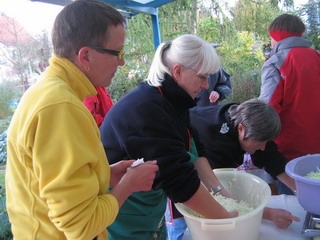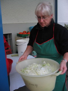 Einladung zum Sauerkraut machen „Chabishoblete“Am Samstag, 20. Oktober 2007 ab 9.00 Uhr bei Anna Spreng, Entfelderstrasse 11, 5742 Kölliken. Sauerkraut wird wieder entdeckt und gehört zu den besten Vitaminlieferanten im Winter. Auch aus wenig Kabis kann Sauerkraut gemacht werden.Wir machen das Kraut in ½ und 1 Liter-Gläser ein. Es sind Schraubdeckelgläser und auch solche mit Gummiring und Bügel brauchbar. Die Deckel müssen gut schliessen! In ein 1 lt Glas passen ca.700g und in ein ½ lt Glas 350g Kabis. Die Kosten für den Kabis-Einkauf übernimmt der Verein! Wir freuen uns auf die Arbeit mit Ihnen Der Vorstand Anmeldung bis am 16.10. mit folgenden zusätzlichen Angaben: