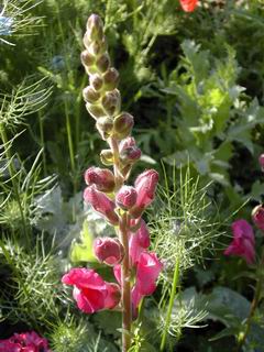 Verschiedene Rosatöne und weiss, einjährig, samt gerne selber aus, bis 130 cm hoch, muss vielleicht gestützt werden, blüht bis in den Herbst hinein und wird gerne von den Distelfinken besucht wenn die ersten Samen entstanden sind. (Madeleine
