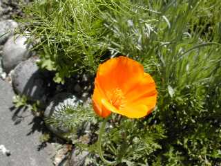 Einfache Blüten in leuchtendem gelb bis orange. Feingefiedertes blau-graues Blatt. Blüht von Mai bis Oktorber. Die Blüten sind nur bei Sonnenschein geöffnet. Höhe ca. 40 cm . Die Knospe befindet sich in einem Mützchen, das dann abgestreift wird (Schlaf- mützchen)! Vermehrt sich selbst. |