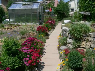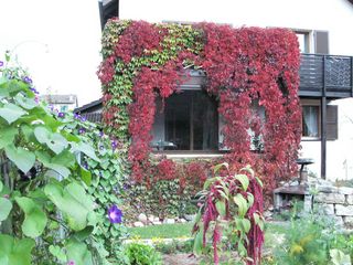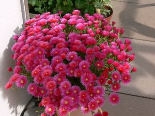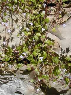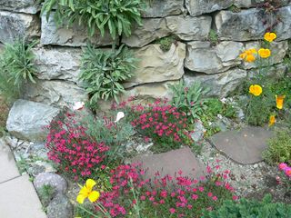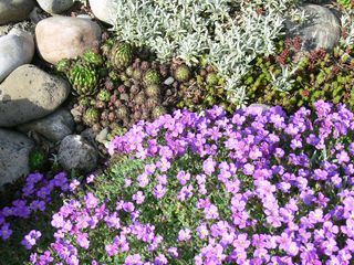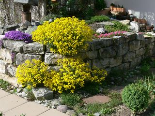 Violettrosa blühend, meterlange hängende Triebe. Steingarten, Steinmauer, trockener und sonniger Standort |